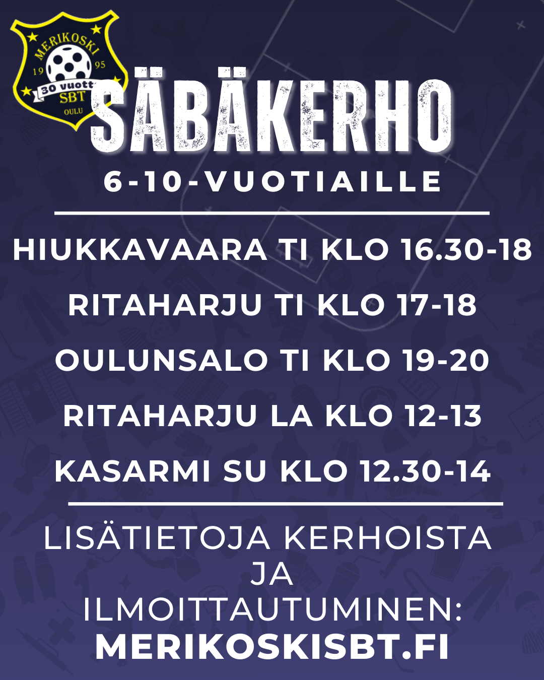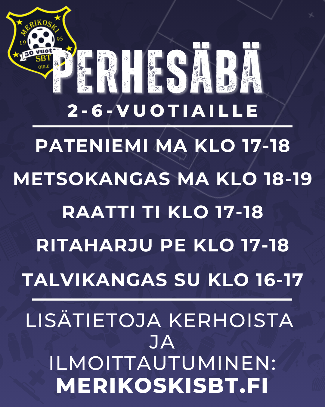Perhesählyn ja Säbäkerhojen ilmoittautuminen on avattu. Merikoski SBT tarjoaa Oulun alueella laadukasta ja monipuolista toimintaa;…