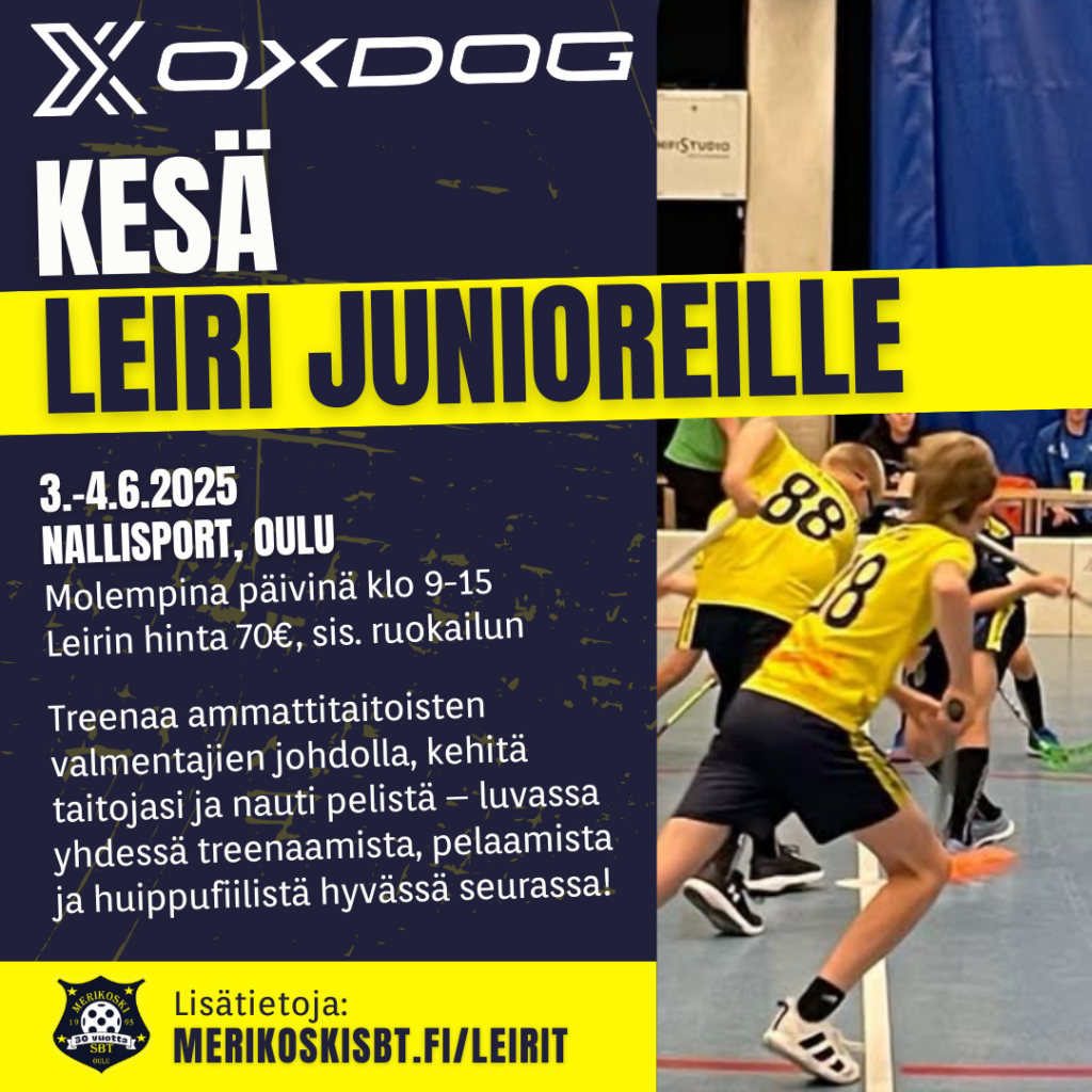 Merikoski SBT järjestää Oxdog-salibandyleirin junioreille kesäkuussa 2025. Oxdog-salibandyleiri järjestetään kokonaisuudessaan Nallisportin tiloissa ja leiri on jaettu kahdelle päivälle, 3.-4.6.2025. Leirille ovat tervetulleita kaikki salibandysta kiinnostuneet juniorit kaikista seuroista!